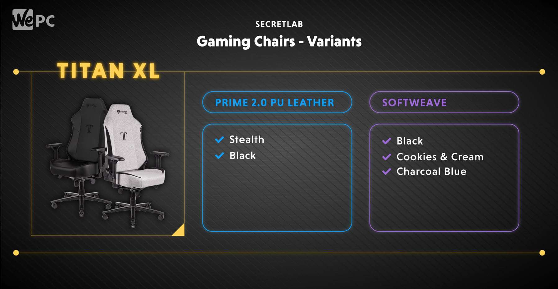 It is worth noting that the Titan XL is limited to SoftWeave and PU leather, for a total of four different color options.