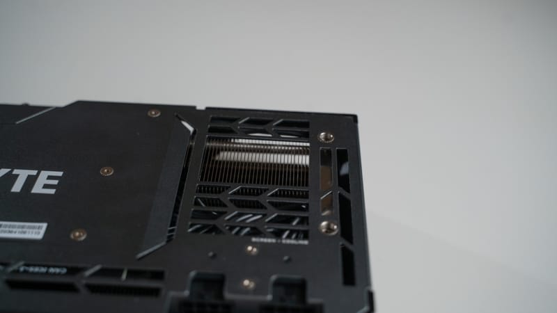 The metal backplate has been finished with a gunmetal color and looks extremely fitting with the rest of the card’s design. There are several cutouts on the rear of the card which allow air to flow through the GPU more efficiently. Whilst cooling was the main focus for the cutouts, they still add a nice aesthetic to the rear of the card.