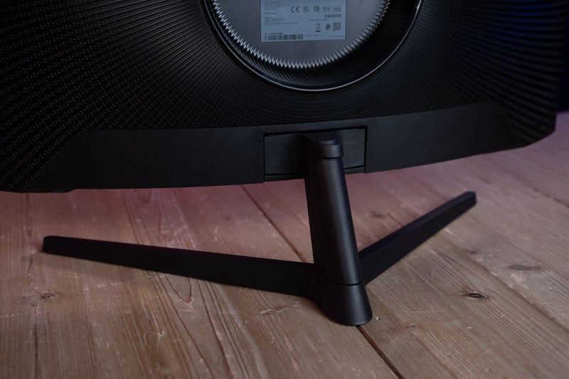 Moving to the rear of the panel, there really isn’t a great deal to report on. The back offers a vortex look with some nice etchings that cover the entirety of the rear. Unlike the other monitors within the Odyssey lineup, the G5 doesn’t have an input cover either – instead, opting for a large circular cutout which, despite not looking the best, does offer easy access to inputs.