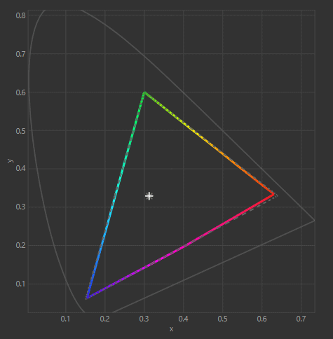 As part of the calibration process, the DisplayCal will give an accurate measurement of the color gamut the monitor can provide. Below are the results of the color gamut test: