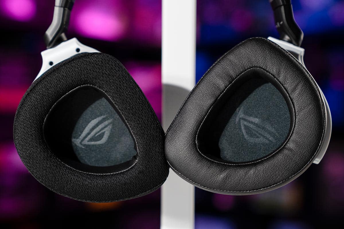 Another reason we quickly became so fond of the Delta S Wireless is the alternate set of ear cushions included in the box. Big companies are normally too stingy to consider generosity but Asus ROG appears to be an exception to that rule. Of course, you get the standard faux-leather earcups as per usual with essentially every gaming headset ever, but they also include a set of fabric ear cushions.