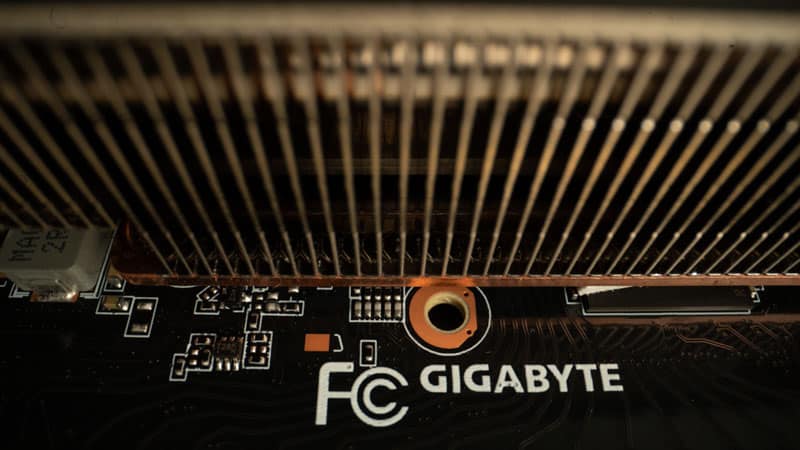 Looking at the card front on – or fan side on – you’ll see a large notch on the top side of the GPU near the mounting bracket. This offers no real benefit to the Gaming OC 10G and is only there for the NVlink found on the RTX 3090 – which utilizes the same cooling solution.