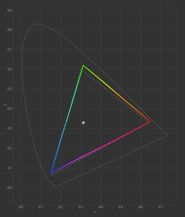 As part of the calibration process, the DisplayCal will give an accurate measurement of the color gamut the monitor can provide. Below are the results of the color gamut test: