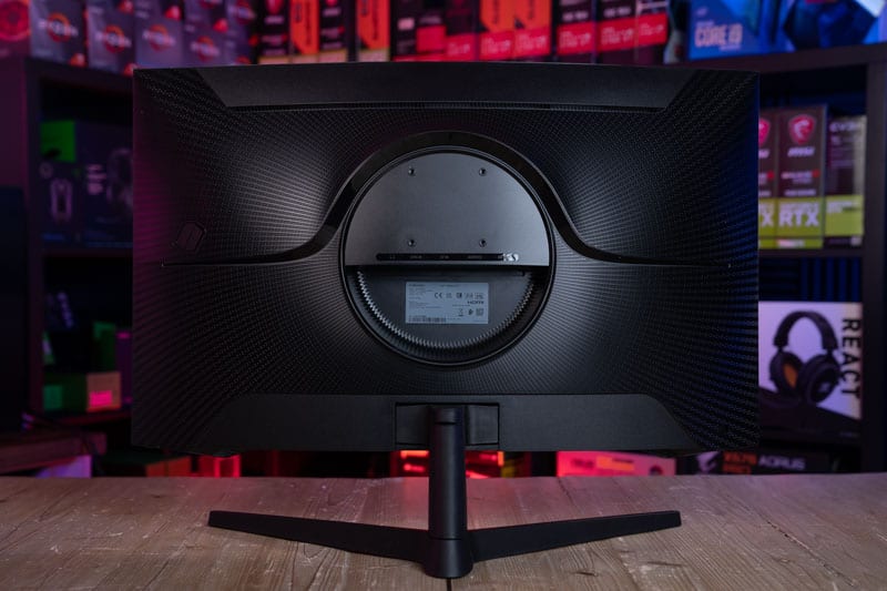 Moving to the rear of the panel, there really isn’t a great deal to report on. The back offers a vortex look with some nice etchings that cover the entirety of the rear. Unlike the other monitors within the Odyssey lineup, the G5 doesn’t have an input cover either – instead, opting for a large circular cutout which, despite not looking the best, does offer easy access to inputs.