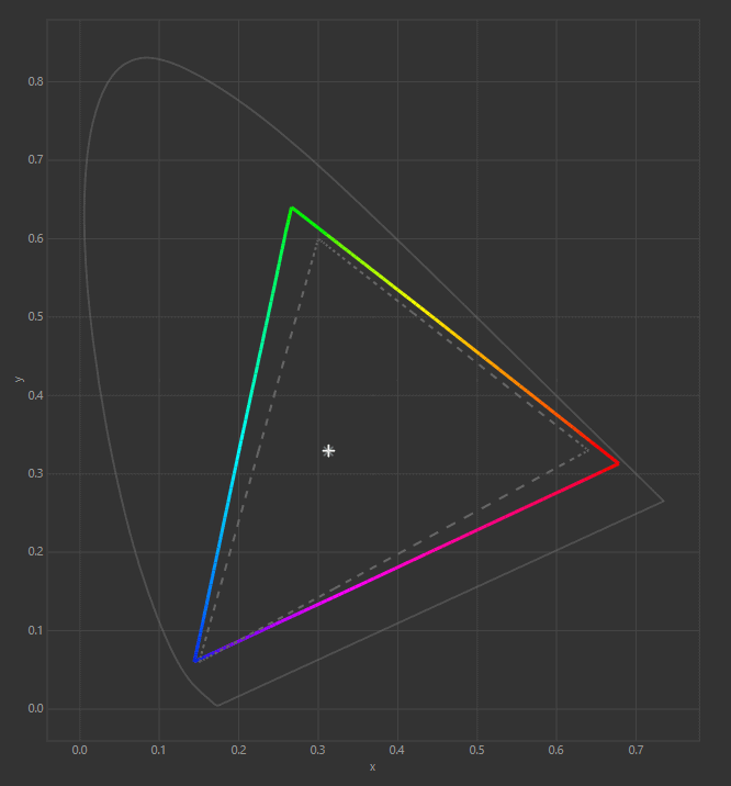 As part of the calibration process, the DisplayCal will give an accurate measurement of the color gamut the monitor can provide. Below are the results of the color gamut test: