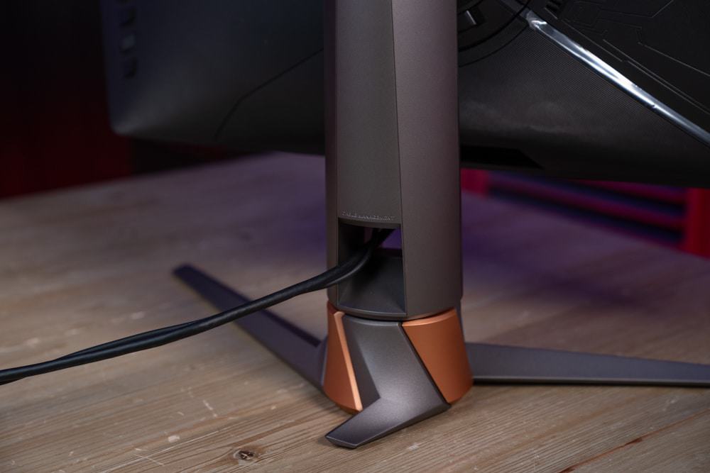 ASUS has given the PG259QN a very gamey aesthetic, characterized by all the usual ROG Swift trademarks we’ve come to love over the years. The base of the stand is completely metal and has a nice powder-coated finish. ASUS has opted for a copper-on-silver design that I think looks fantastic. It adds a nice premium feel to the monitor’s design which carries through to the rear of the panel.