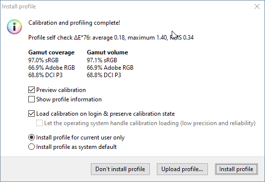 As part of the calibration process, the DisplayCal will give an accurate measurement of the color gamut the monitor can provide. Below are the results of the color gamut test: