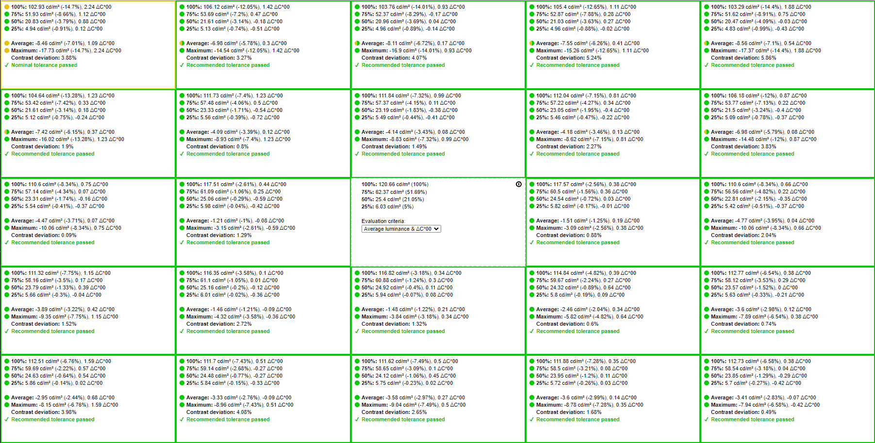 We ended the color accuracy and picture quality testing by checking the maximum brightness, minimum brightness, and 120 candelas level on this panel. The results are below: